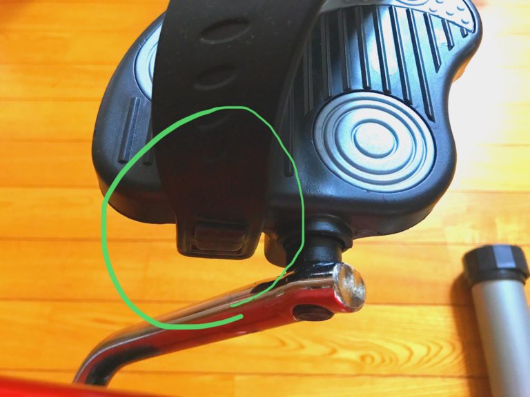 ペダルの内側の足を固定するベルトを止めるボッチ